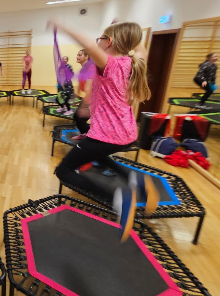 Jumping Kids (6-9 Jahre) ist ein fröhliches Hüpf-Abenteuer voller Spaß und Bewegung! Zu cooler Musik springen, tanzen und spielen die Kinder auf dem Trampolin. Spielerische Übungen fördern Koordination, Balance und Ausdauer -ganz ohne Leistungsdruck. Perfekt, um Energie loszuwerden, Selbstvertrauen zu stärken und jede Menge Spaß zu haben!